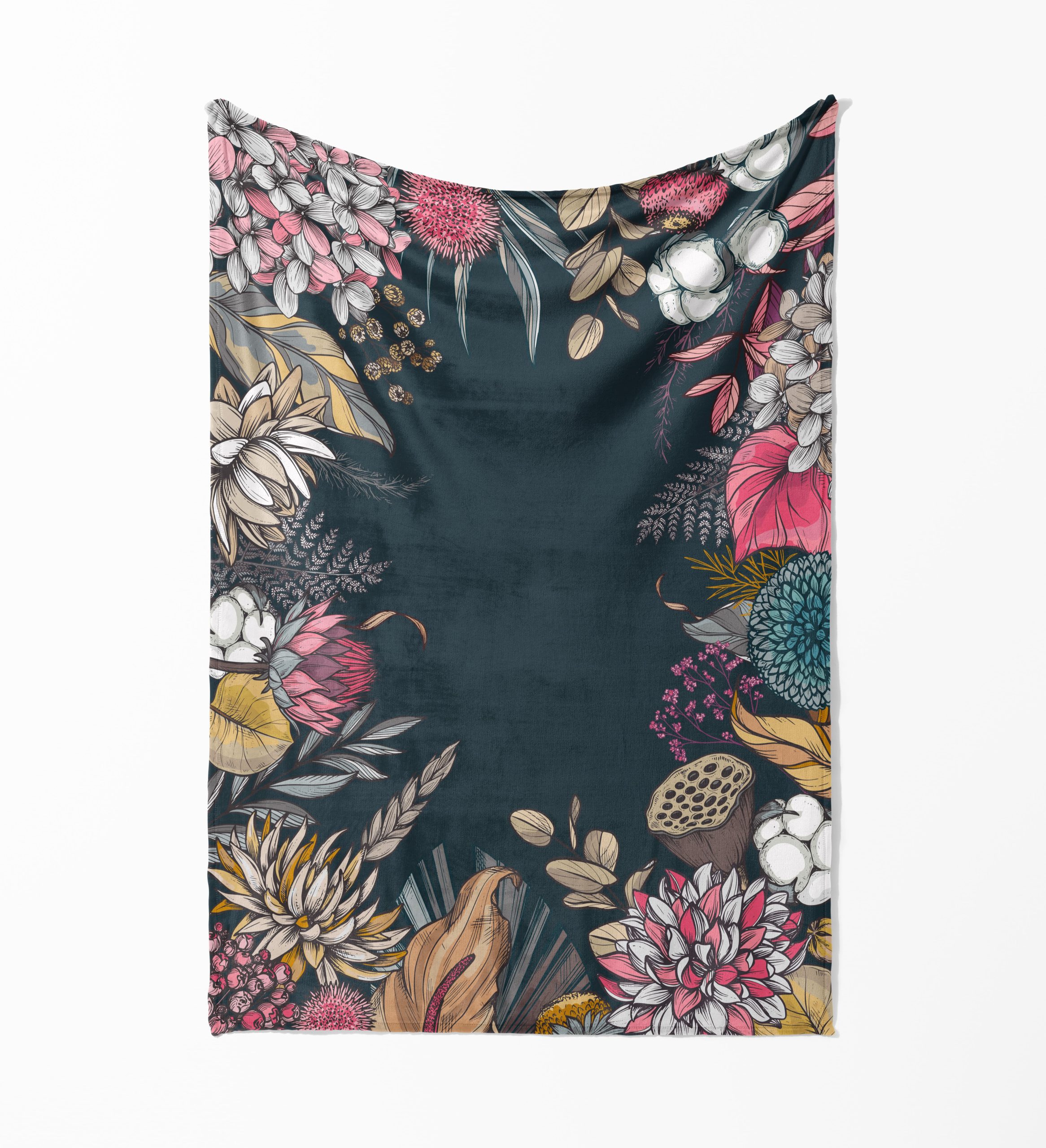 A vibrant explosion of tropical florals. Bold, colourful, and full of character – this sheeps fleece blanket is made to stand out and keep you warm in style.