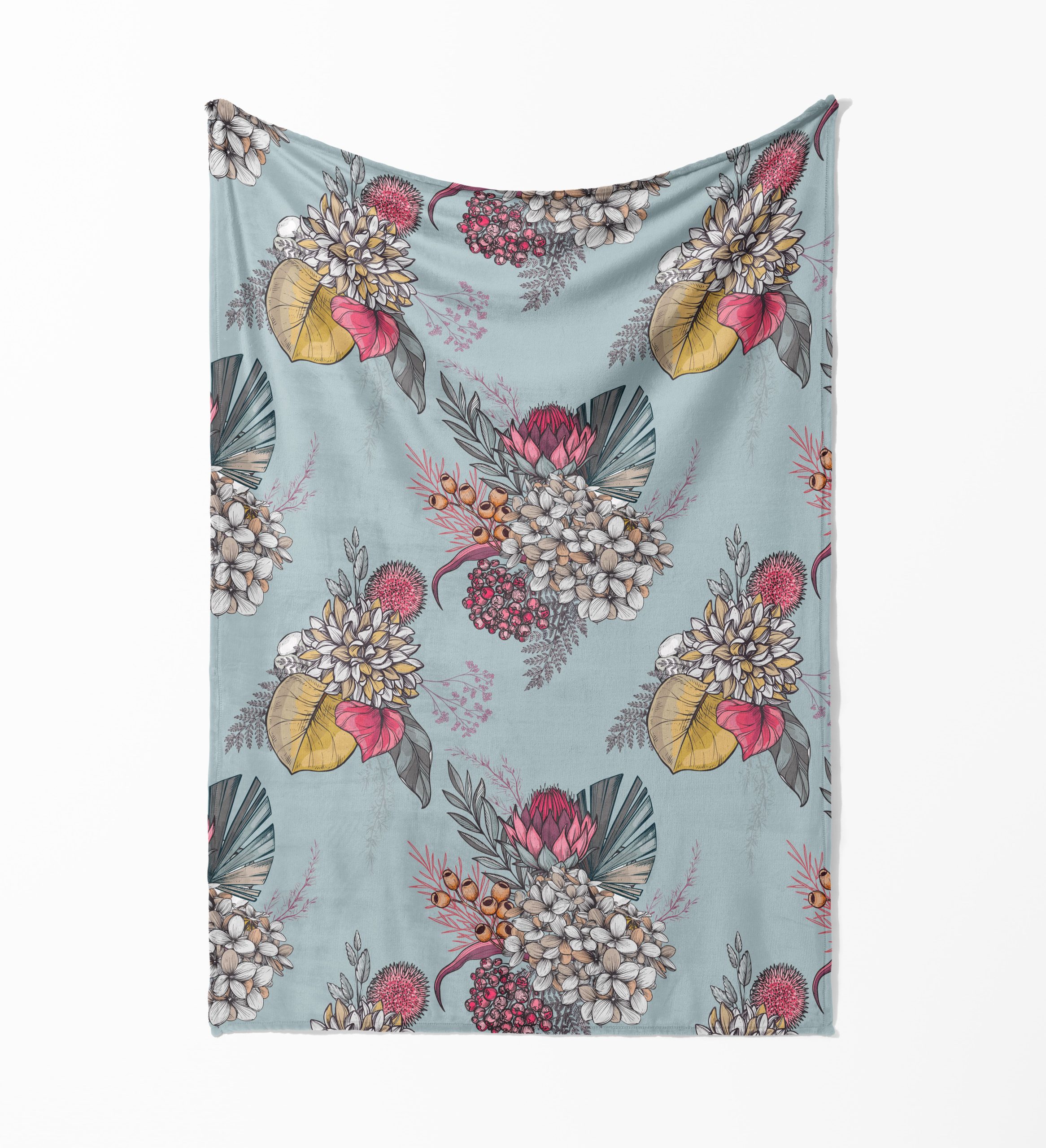 Elegant floral clusters bloom across a muted backdrop. Delicate, refined, and effortlessly beautiful – this blanket adds a gentle pop of colour and plush warmth.