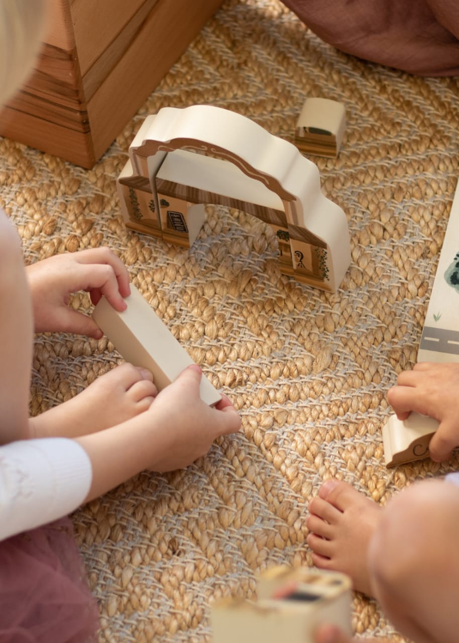 Each curved piece can become a bridge, a tunnel, a roof or part of a tiny world of play — the possibilities are endless. Designed with small hands in mind, each arch is smooth, sturdy and easy to hold.