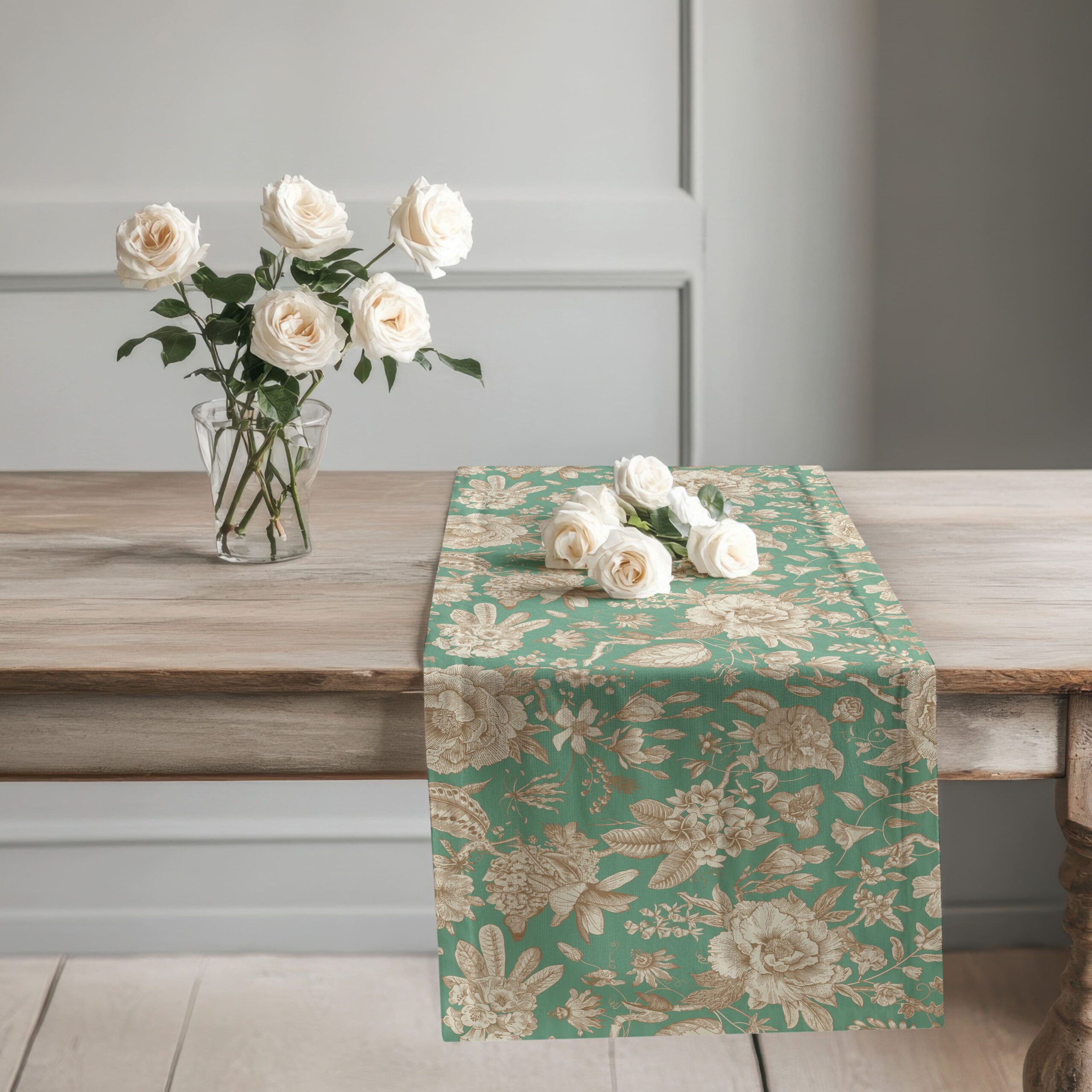 Elevate your tablescape with a classic botanical design that feels both elegant and playfully nostalgic. This linen-look table runner is a stunner.