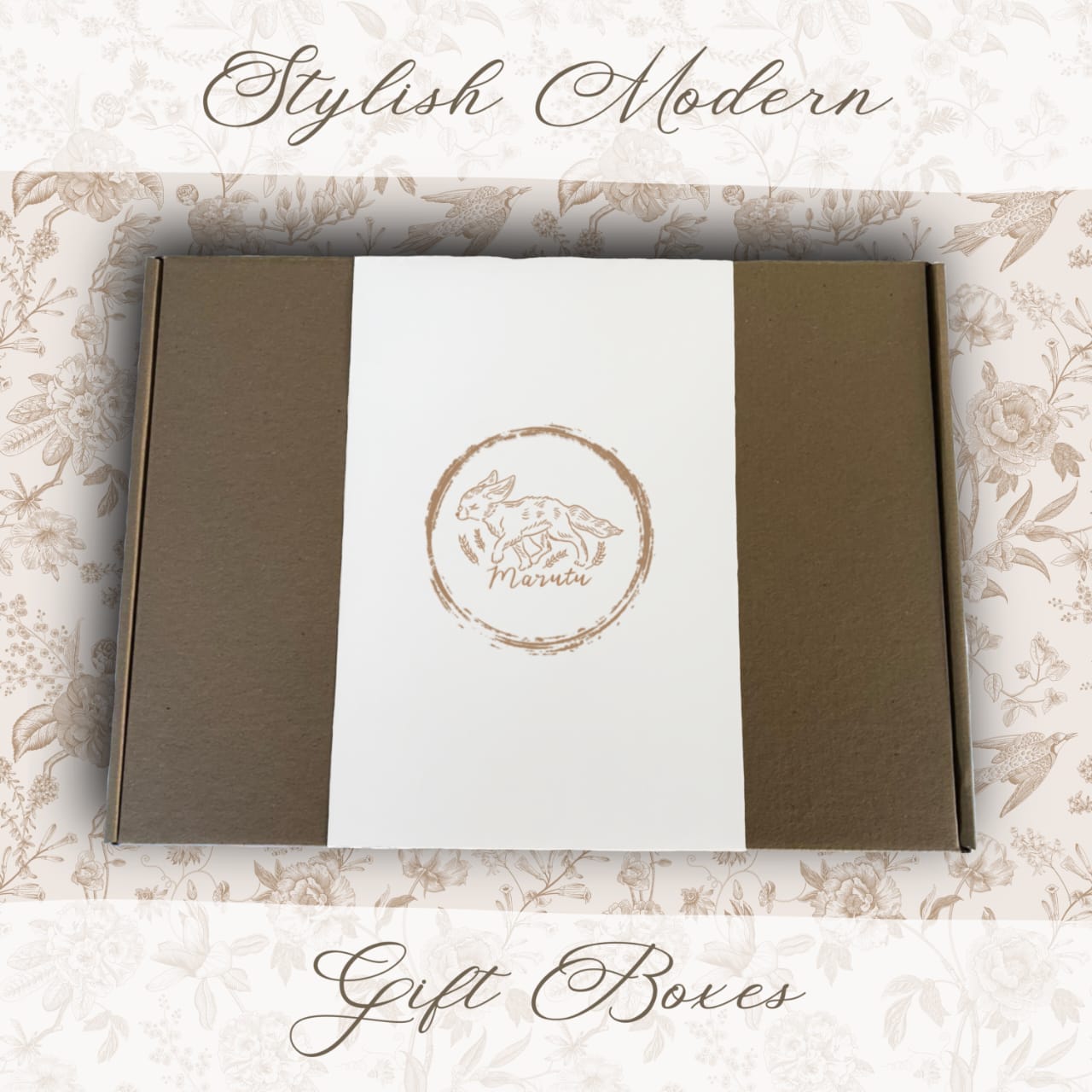 The gift box measures 35cm x 26cm x 10cm and includes tissue paper and a Marutu greeting card for you to add a personal message to this lovely gift.