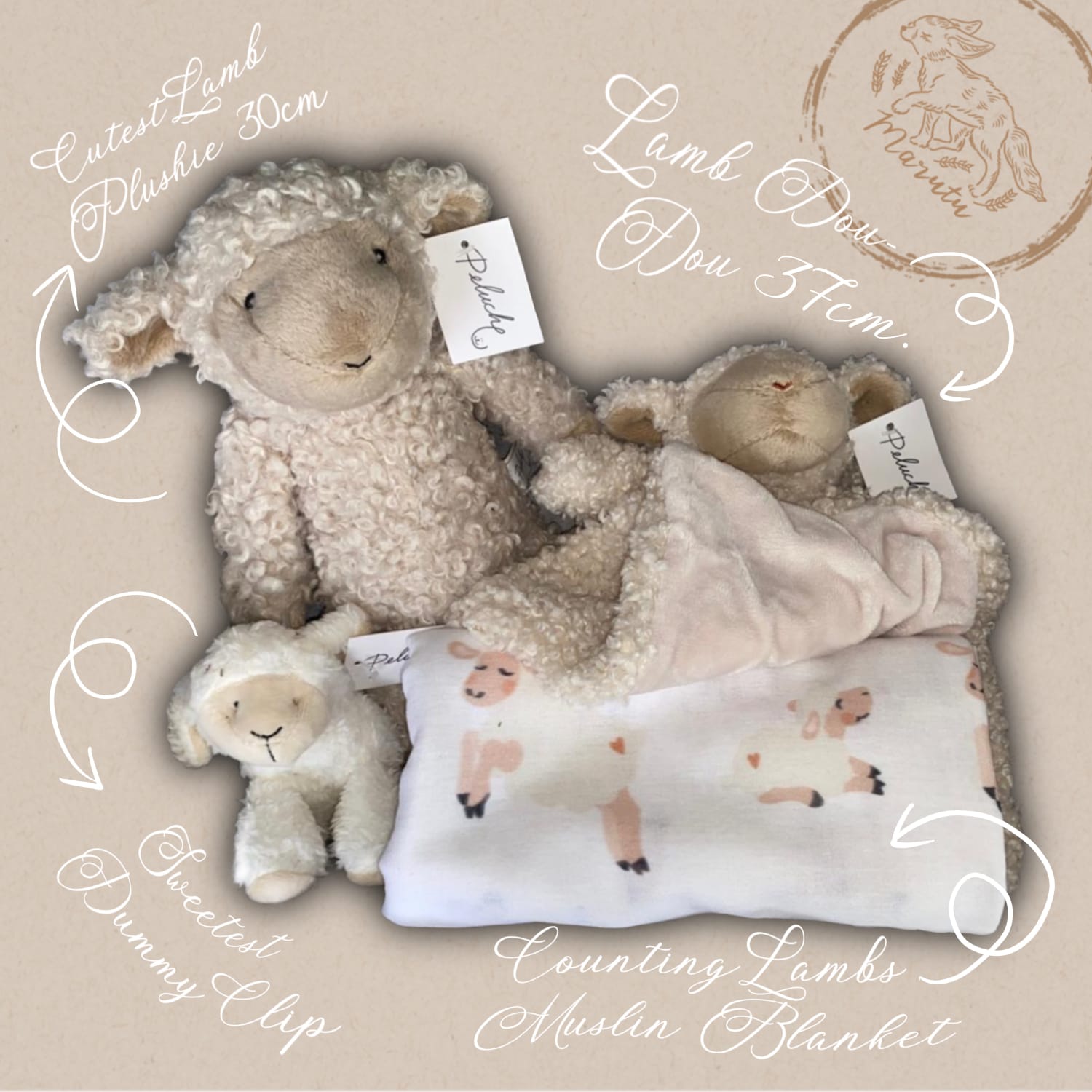 Stylish and timeless, the Counting Lambs gift box is thoughtfully curated for little ones and their first snuggles. Presented in a beautifully crafted Marutu gift box, wrapped in our elegant floral sleeve in white and golden caramel, this set captures both charm and sophistication.