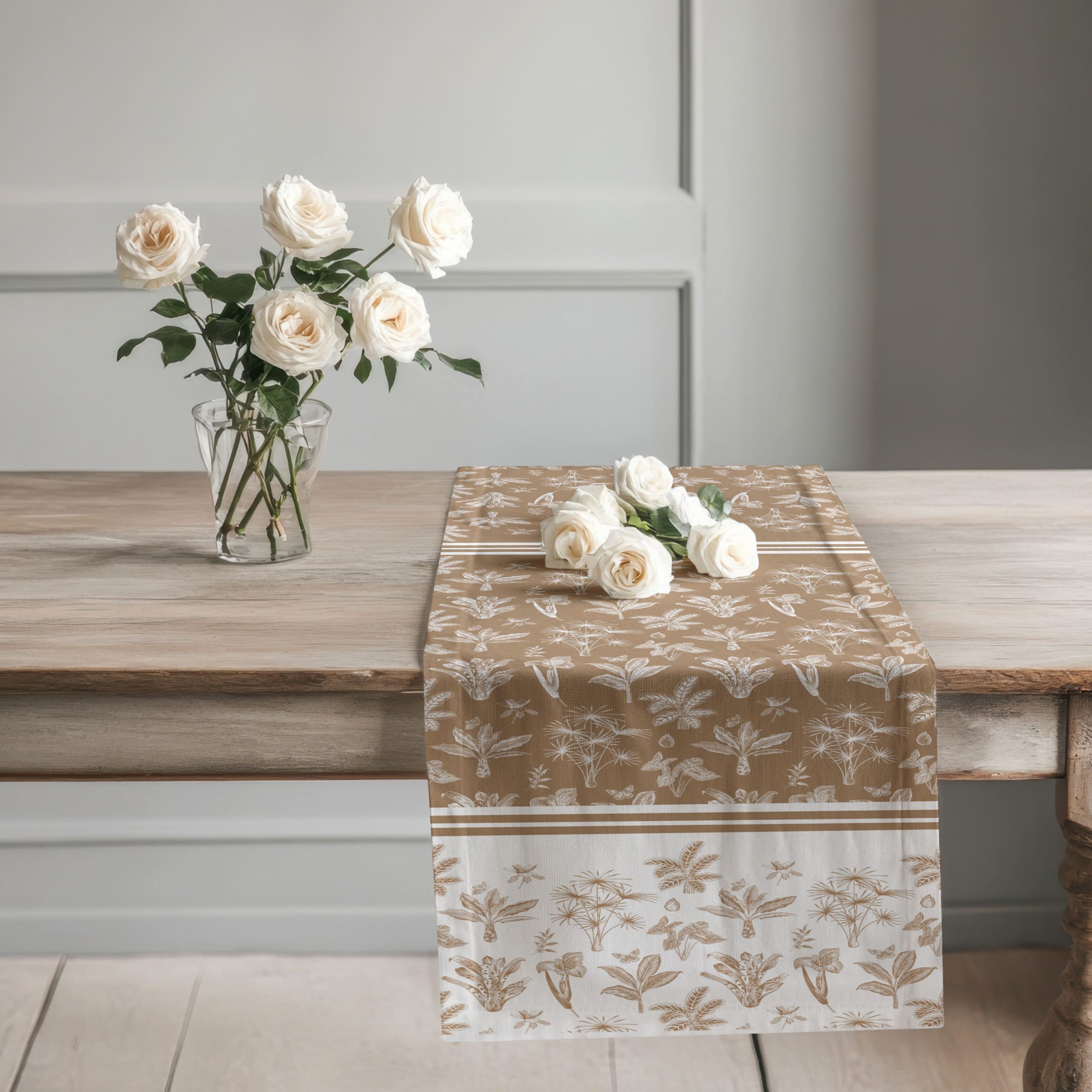 In warm caramel brown, the soleil table runner brings a sun-drenched feel to the table.